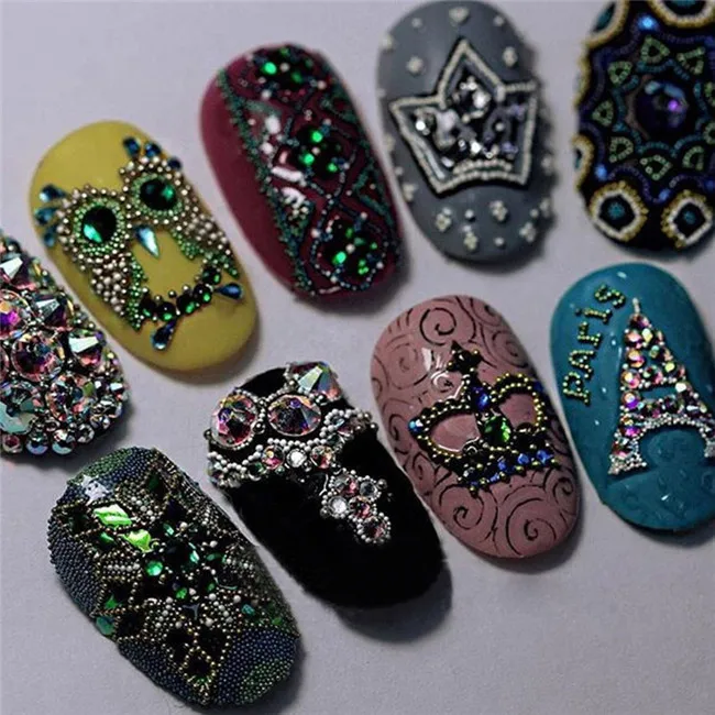 Сияющий декор настолько разнообразен, что в его россыпи потеряется даже самая невозмутимая дама. В ногтевом сервисе используют разные типы кристаллов: имитации драгоценных камней из стекла или пластика, настоящие природные самоцветы, стразы Сваровски. Отличаются мерцающие элементы также формой, размерами, цветовой гаммой.