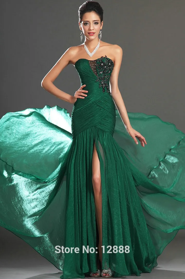 Атмосферный и яркий образ поможет создать вечернее платье из шифона. Красиво выглядит наряд, когда передняя часть короче задней. Изумрудное платье-рыбка очарует окружающих, оно подчеркнет красоту статной и стройной женщины.