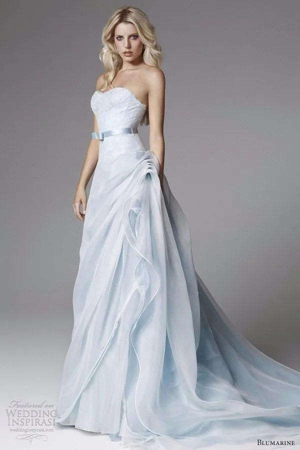 Посмотрите нашу подборку голубых свадебных платьевКроме того, свадебное платье может быть выполнено в ярких, экстравагантных тонах алого, синего, бирюзового, желтого, изумрудного и т. д.