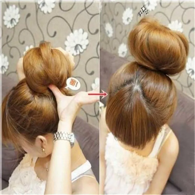 Объемный пучок с губкой для волос легок в своем исполнении, но смотрится изящно и роскошно.