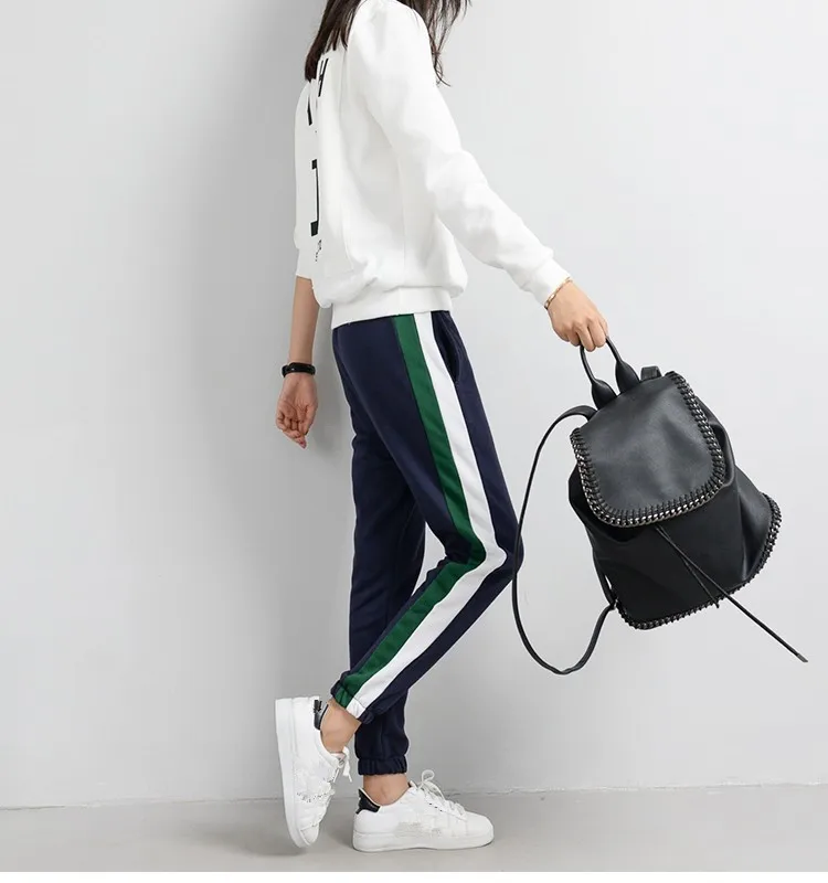 Стройным девушкам подойдут обтягивающие узкие брюки с боковыми полосками. Полным дамам стоит присмотреться к изделиям из мягких тканей и эластичным поясом. Боковые полоски отлично скрывают некоторые недостатки фигуры и визуально вытягивают их обладательницу, особенно в сочетании с высоким каблуком.