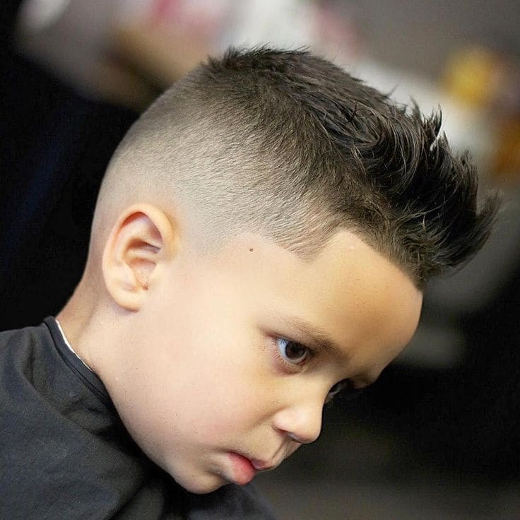 В классической форме, на макушке остаются волоски относительно длинные, от 3 до 5 сантиметров. На висках и затылке они короче. Поэтому — это одна из популярных стрижек для мальчиков 2 лет.