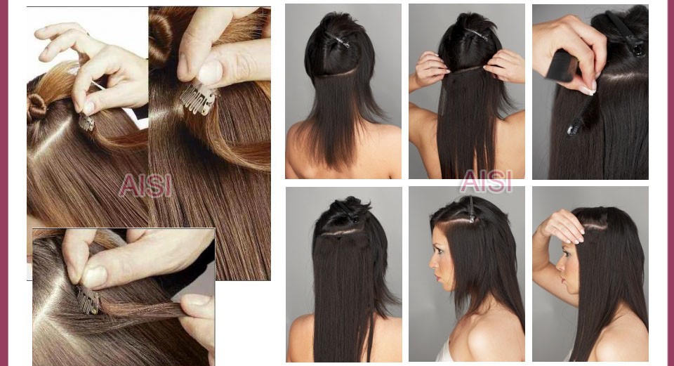Тонкие пряди носить легче, чем густые. Поэтому чем больше прядей в наборе, тем лучше, так как нагрузка на Ваши собственные волосы распределяется более равномерно. Перед тем как надевать волосы на заколках, их нужно хорошо расчесать, чтобы они потом не путались. Крепить накладные волосы нужно начиная с задней части головы двигаясь снизу вверх.